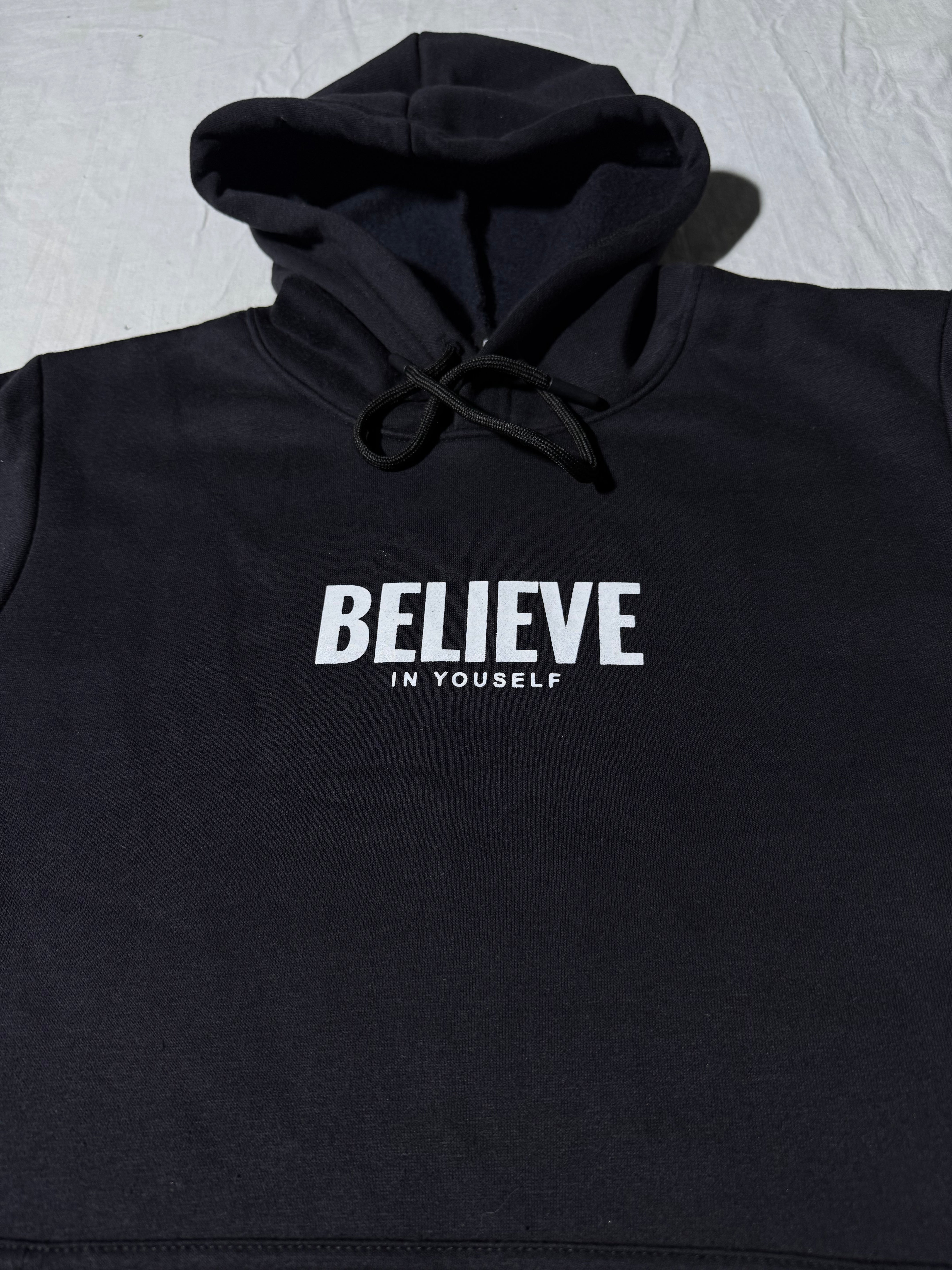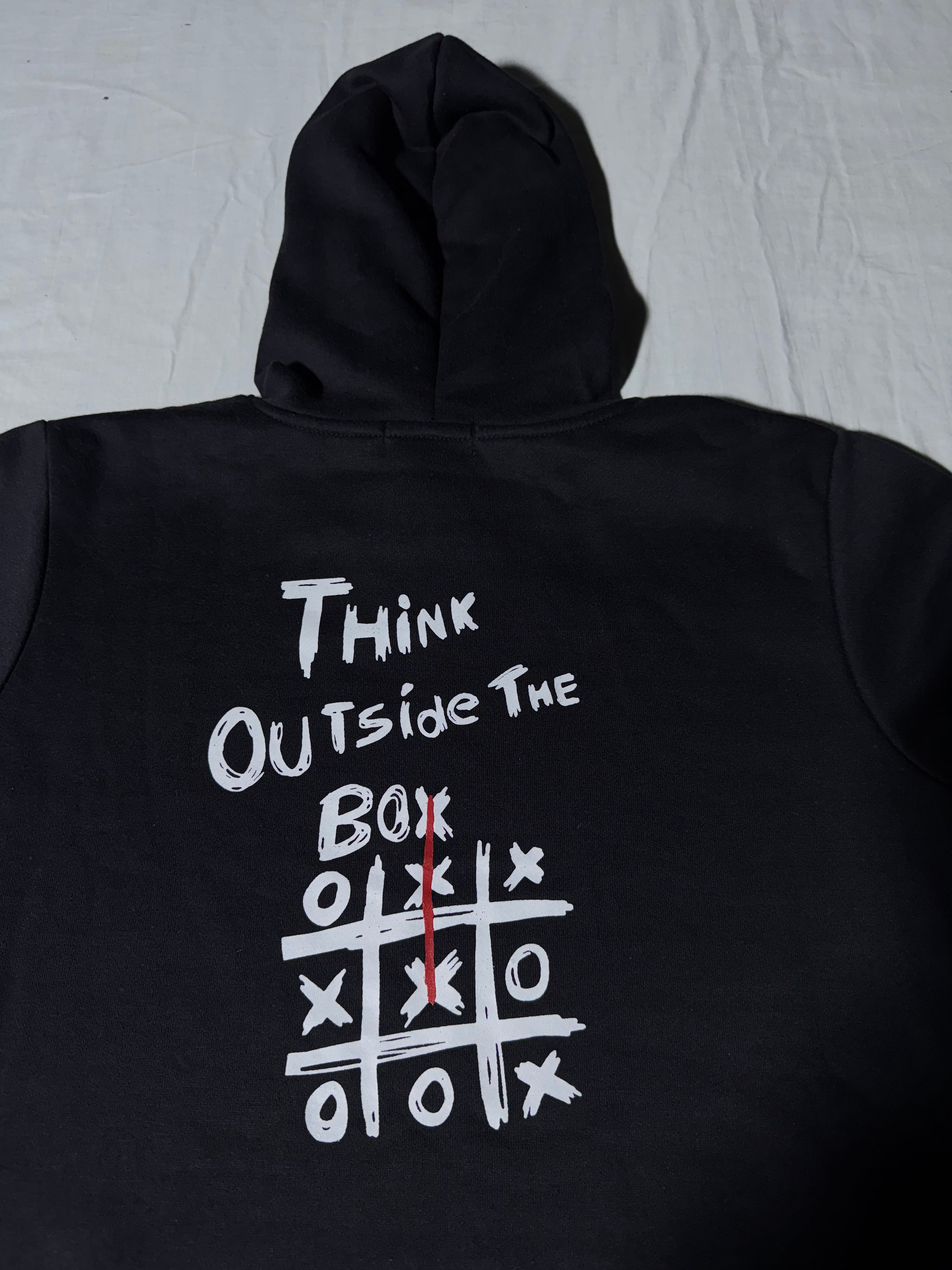 Featuring BELIEVE across the front and THINK OUTSIDE THE BOX with a Tic Tac Toe graphic on the back, this hoodie speaks confidence, creativity, and street energy in every stitch.